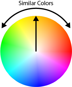For the color of new elements, the Hue Saturation and Brightness system is used because it provides a computational method for picking similar or complimentary colors.
