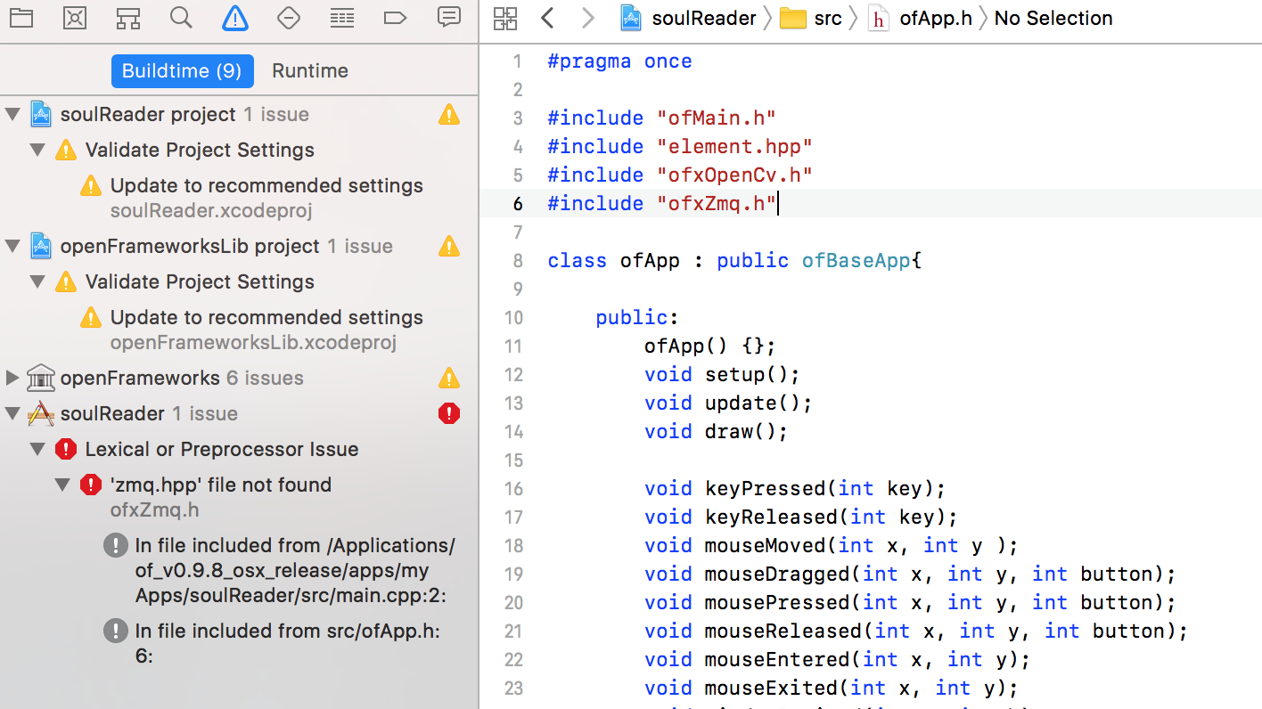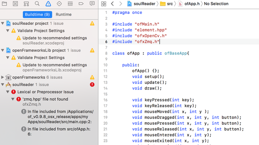 The current communication protocol is using ZeroMq. Unfortunately I spent a day trying to get ZeroMq working with openframeworks and xcode, with no luck.