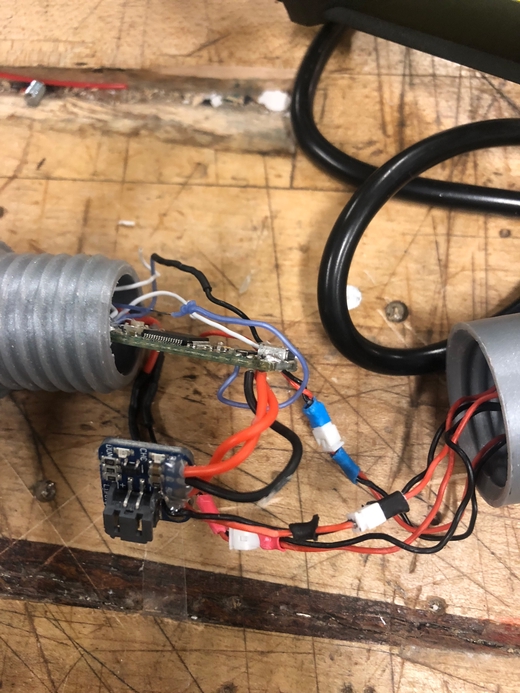 Finally, one day late at night I was trying to fix some of the wires when the power and ground from the battery charging chip to the Teensy touched each other and shorted, frying the chip and the battery: