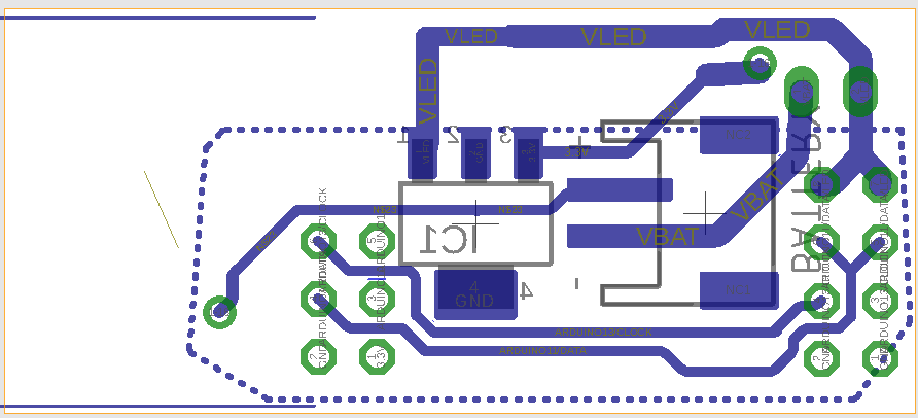 A JST connector would connect to the battery. It’s power would be routed both to the board through a 3.3v regulator, and directly to the LEDs. A switch would enable the battery’s ability to power the board and LEDs to be turned on and off.