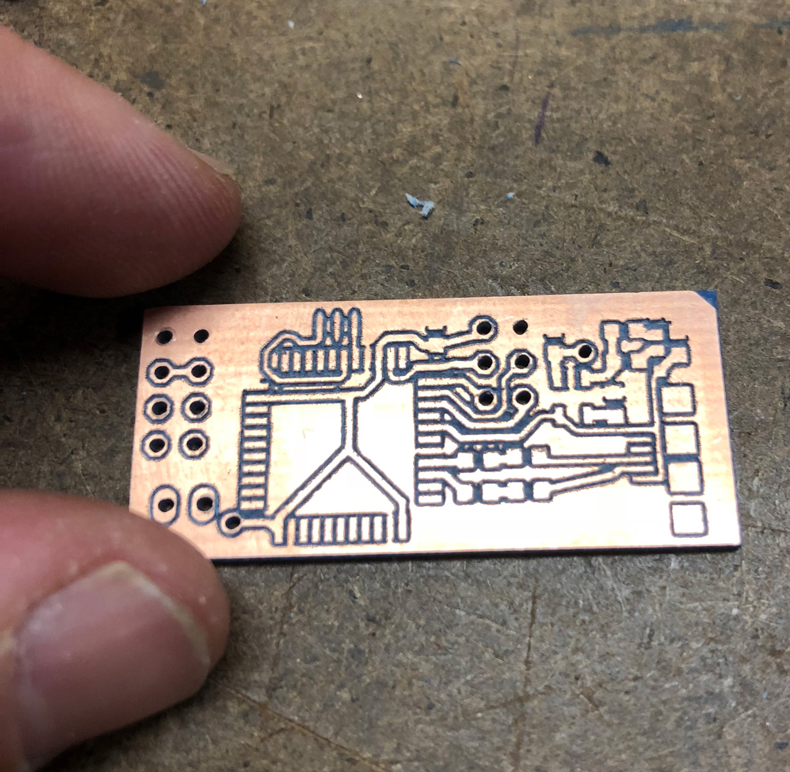 I milled this on the Othermill, and successfully had a 2-sided board: