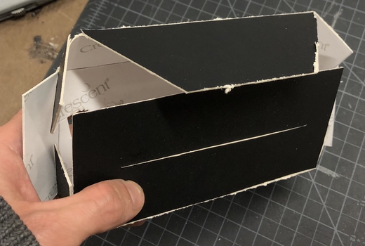 To assemble the final case, I drew some guides on a piece of black card-paper and cut them with an exacto knife.