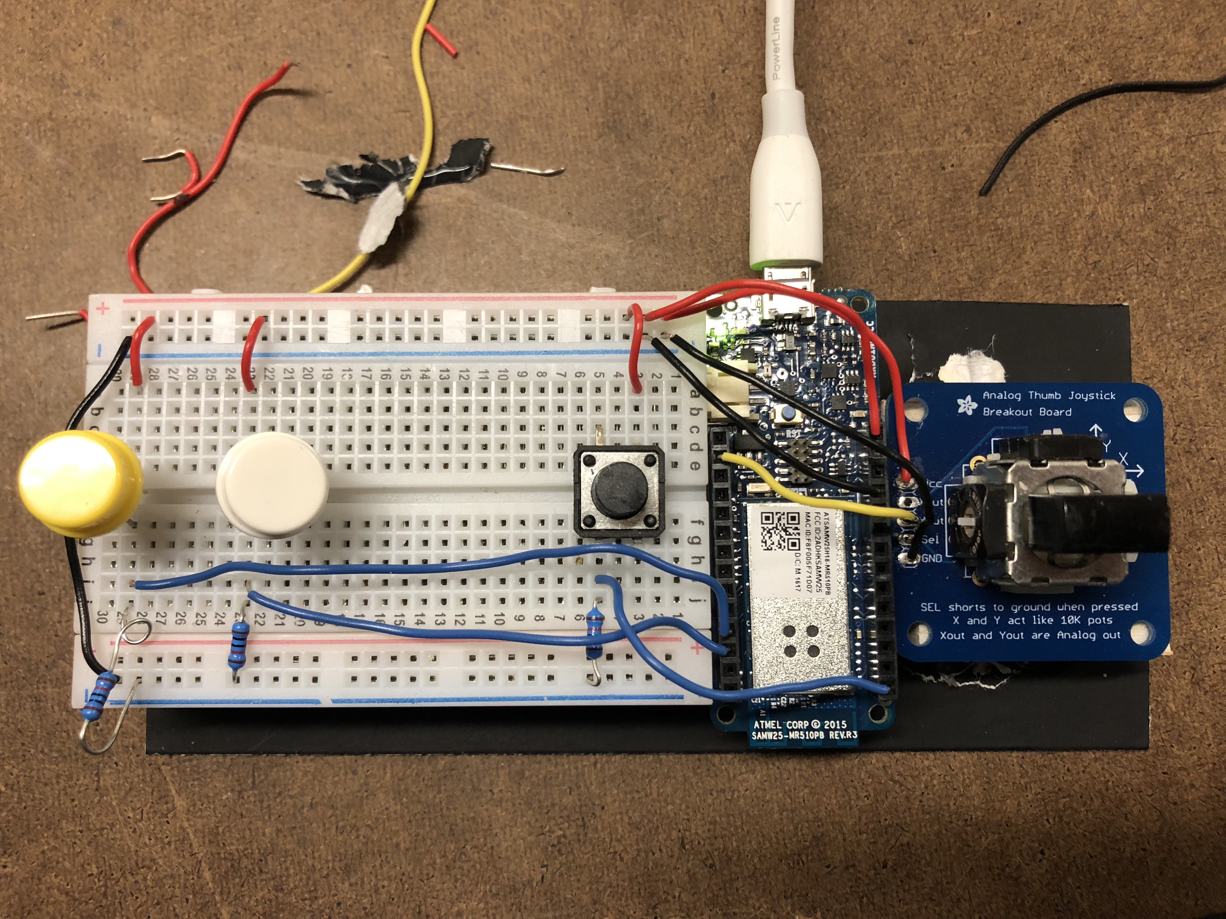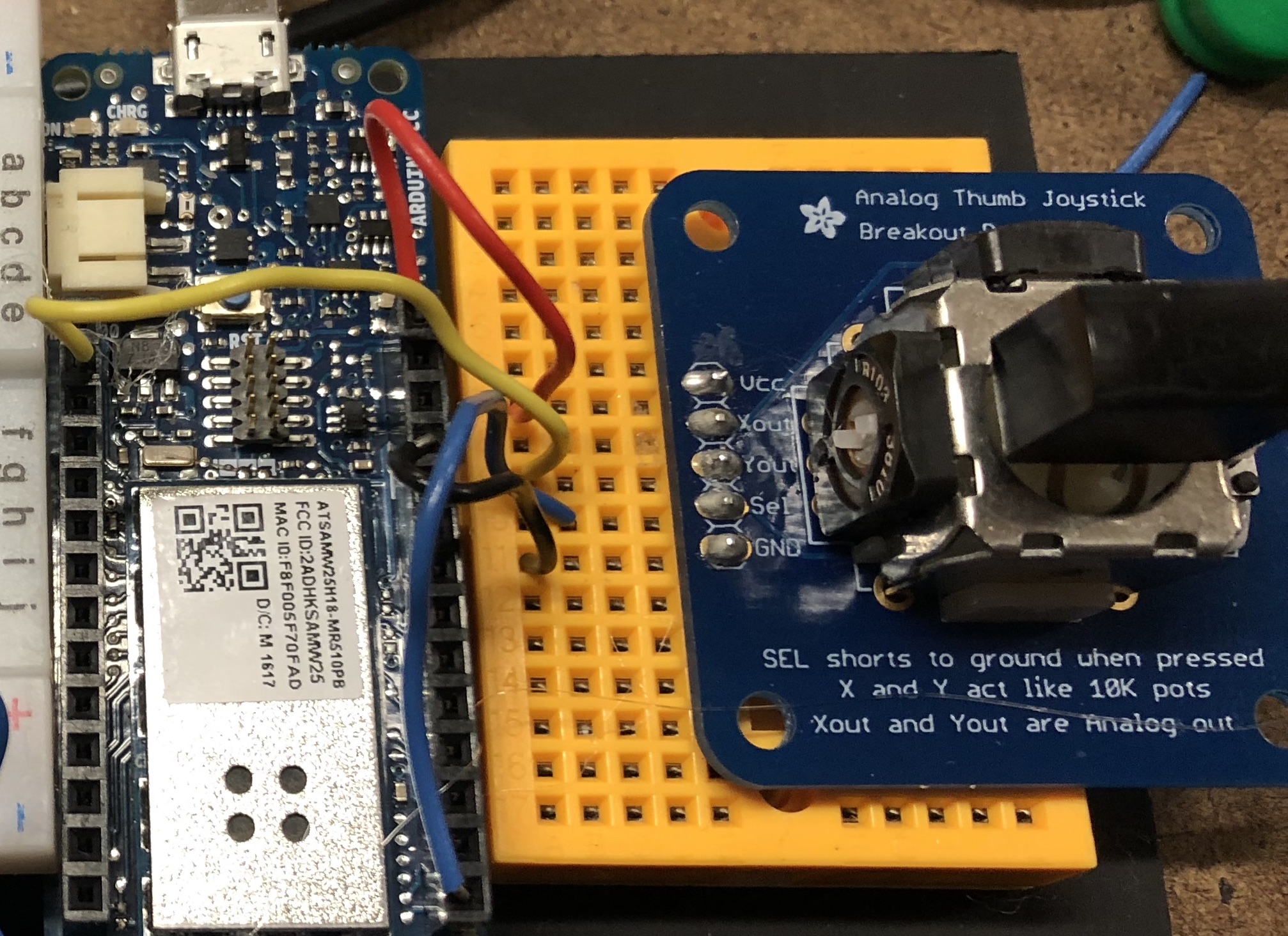 I originally attempted to have the joystick attached via pins to a small breadboard: